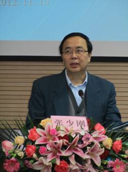 中央电大党委副书记张少刚教授作主题报告 我校杨敬杰副处长作大会交流报告
